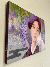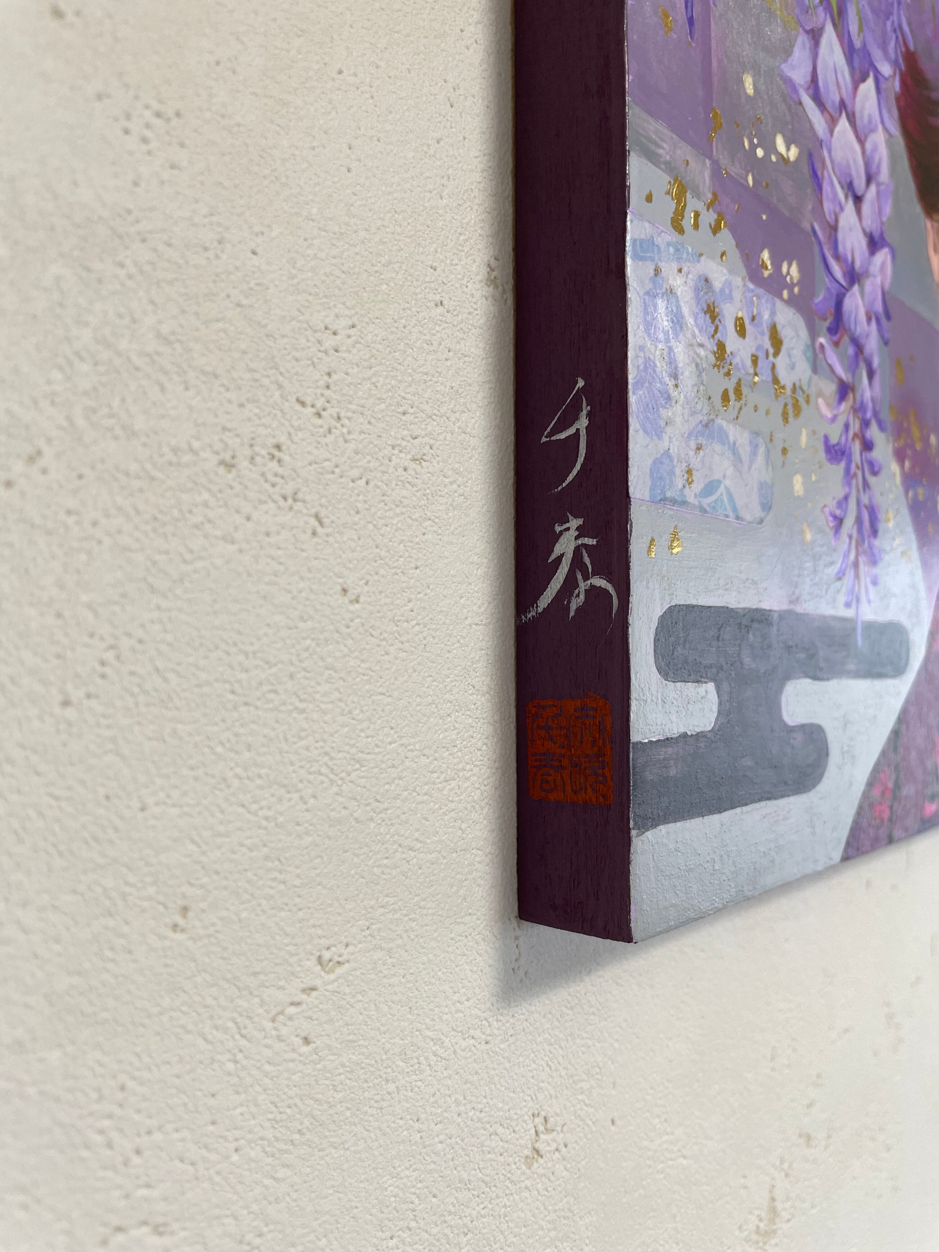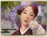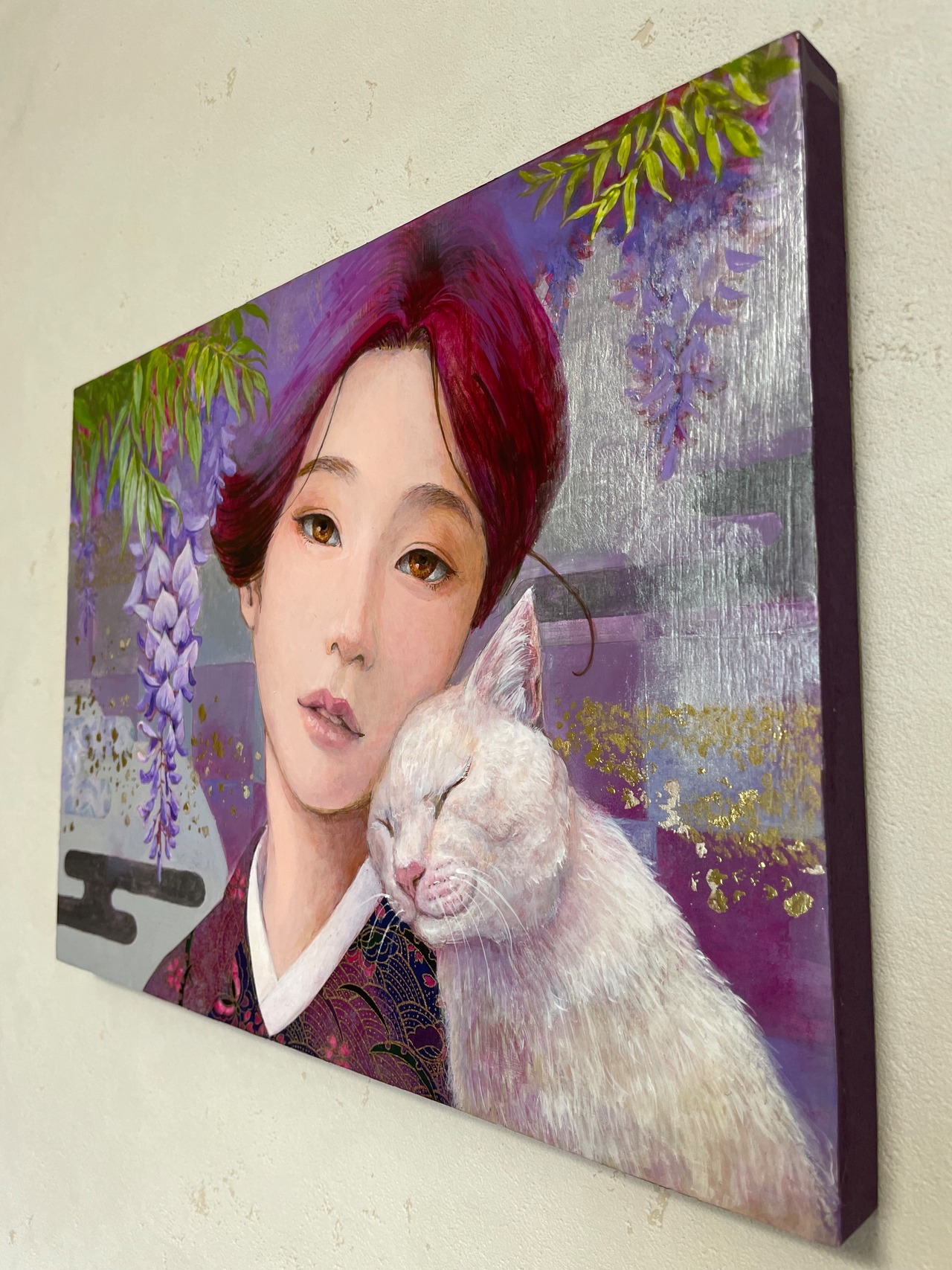 「藤と白猫」F4サイズ原画 "Wisteria and White Cat" F4 size original drawing