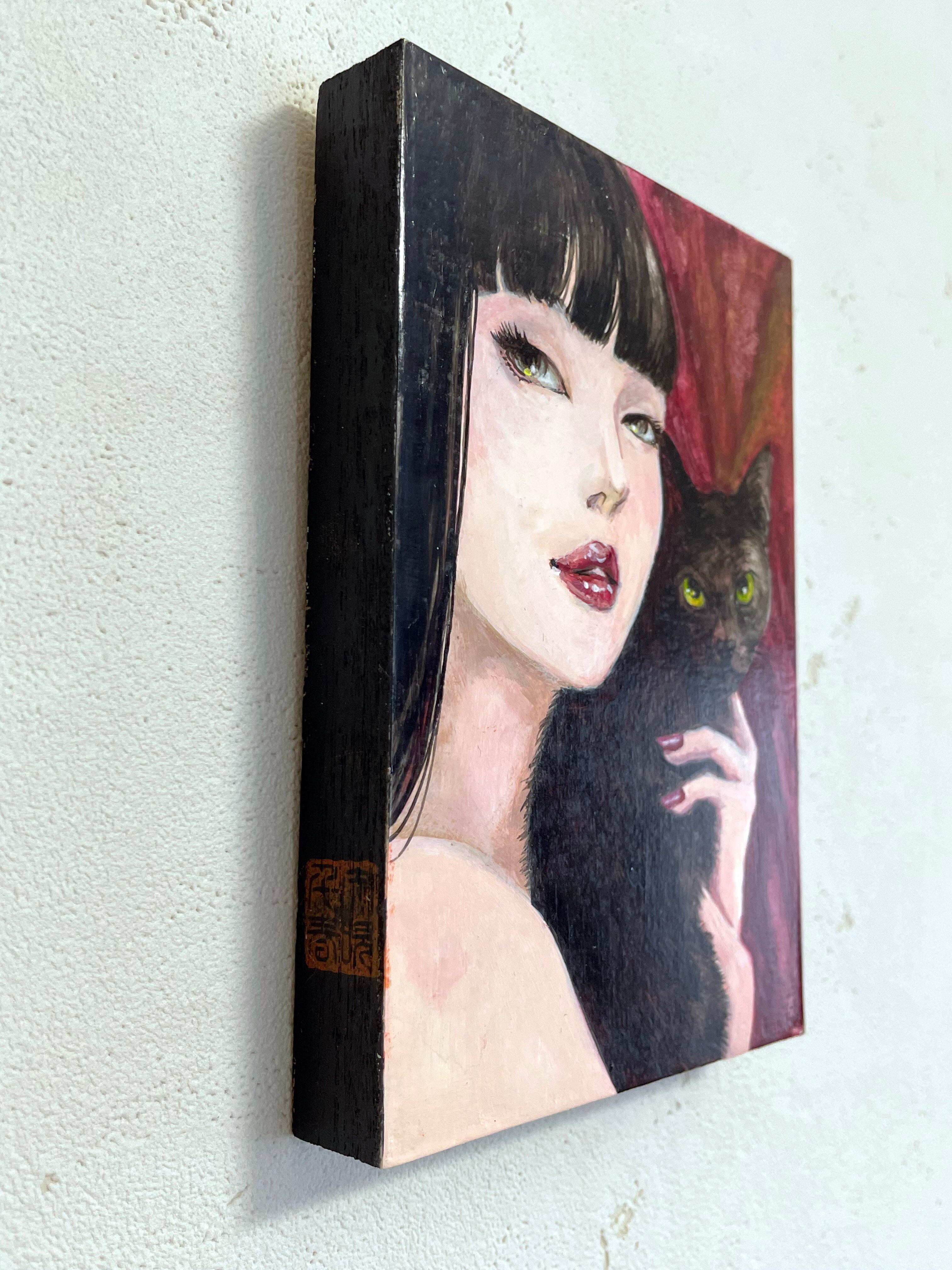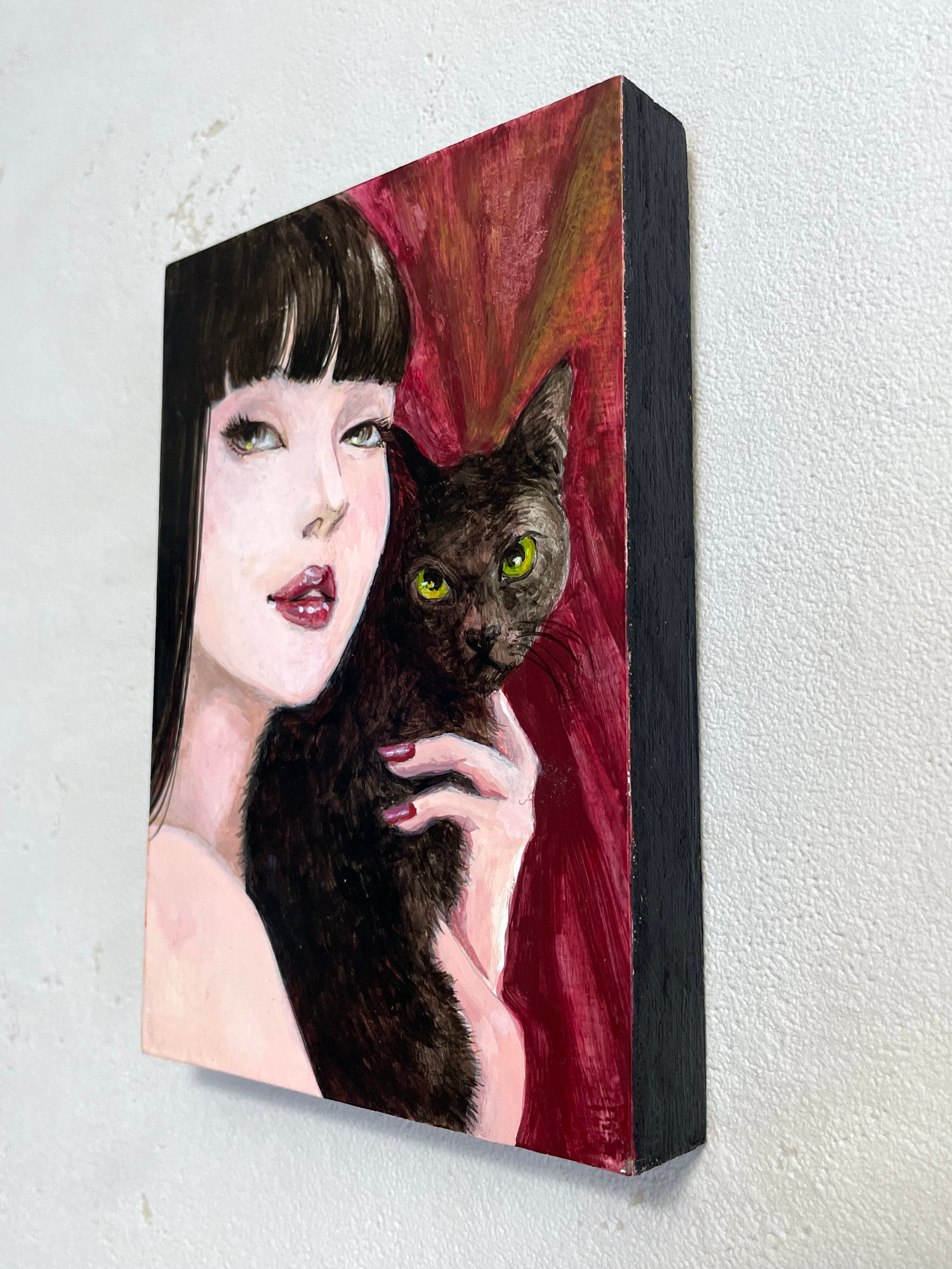 The black cat and the girl's name is "BK". I love the mysterious and captivating atmosphere.
