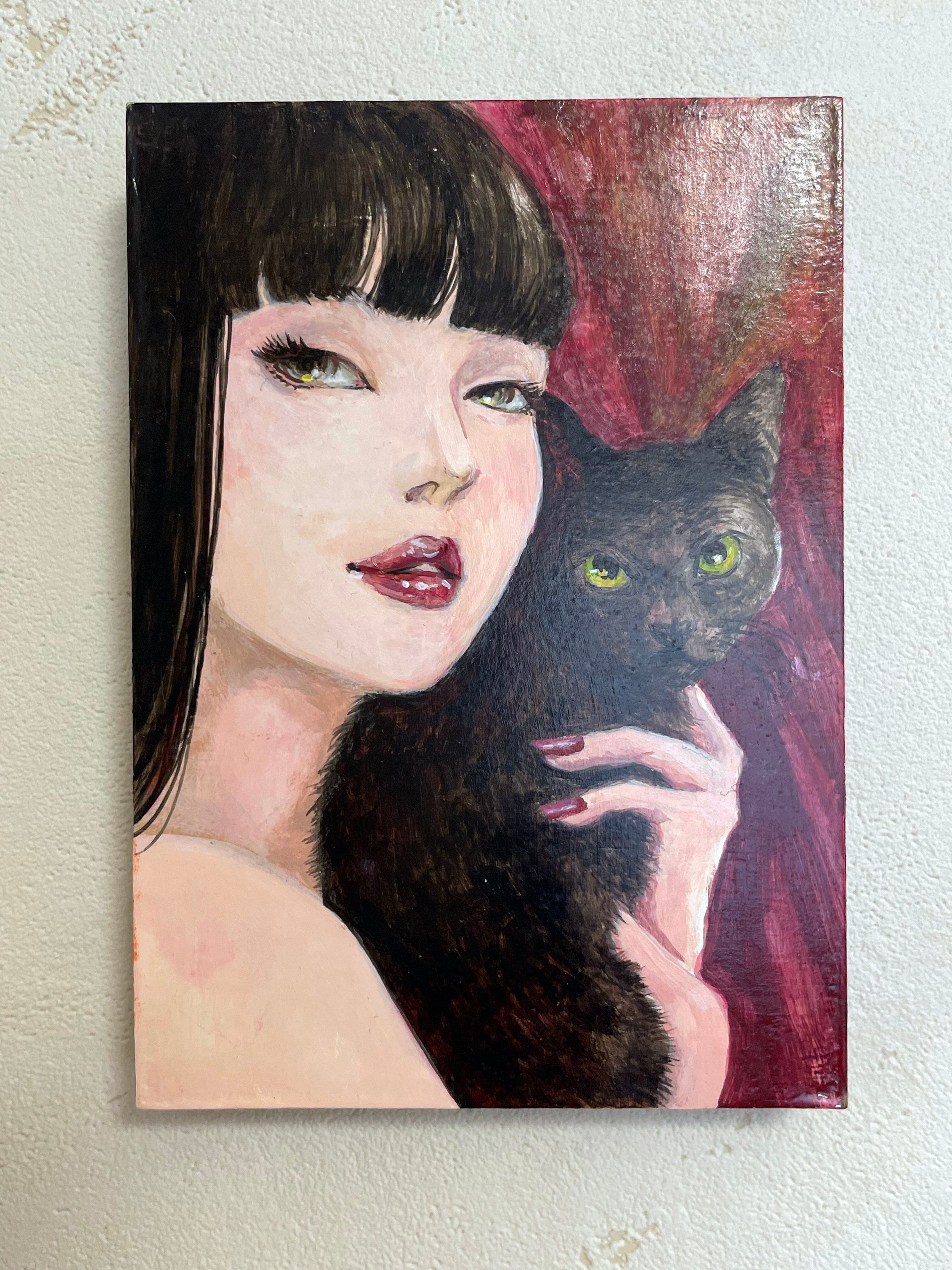 仕様:ハガキサイズ(14.8×10.5cm)、シナベニアパネル、下地、アクリル絵具、アキーラ絵具